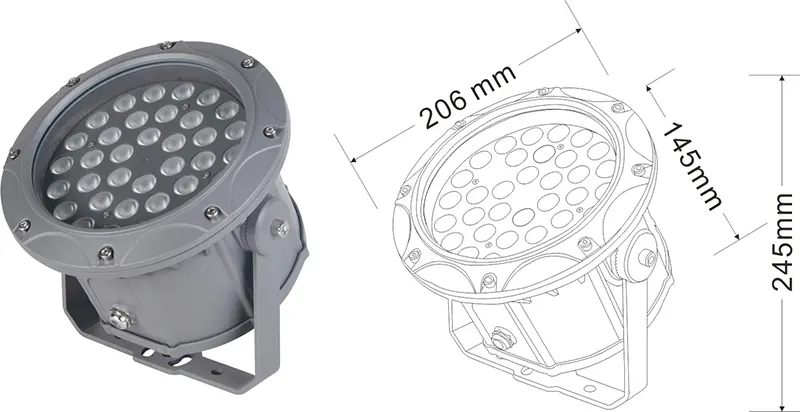 యాస లైటింగ్ అనువర్తనాల కోసం స్థిర-బీమ్ డైరెక్షనల్ లైట్.